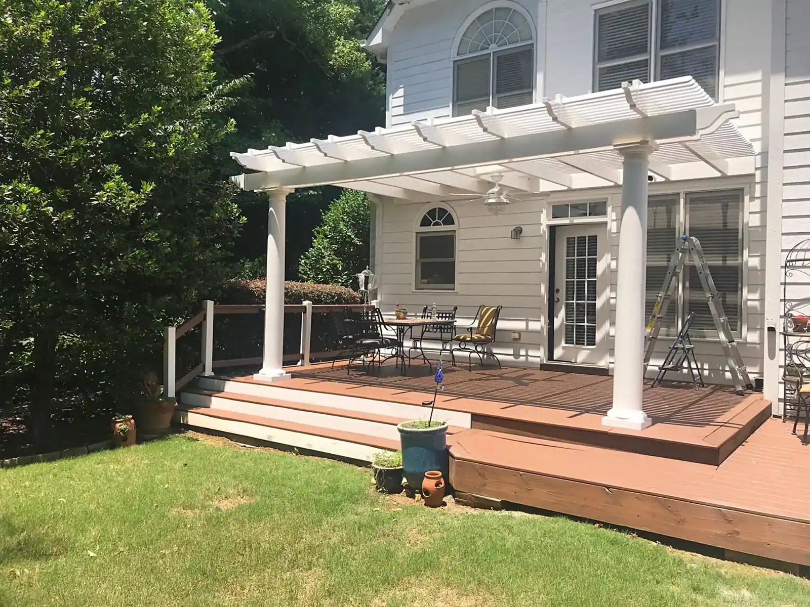 For homes with pre-existing patios or decks, we recommend a pergola directly connected to your home. Attached pergolas are perfect for creating an outdoor extension of your home with a seamless flow between the interior and exterior. With our customizable options, you’ll be able to transform your patio into a peaceful retreat for relaxation, outdoor dining, and family time.